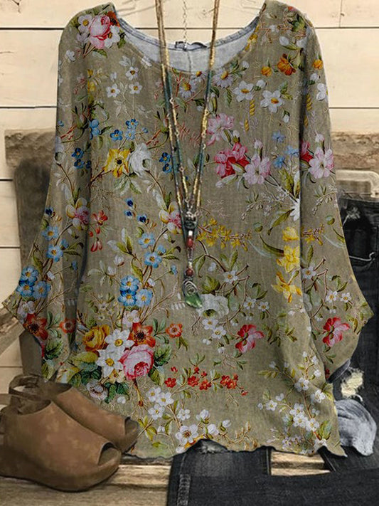 Casual Round Neck Floral Print Top