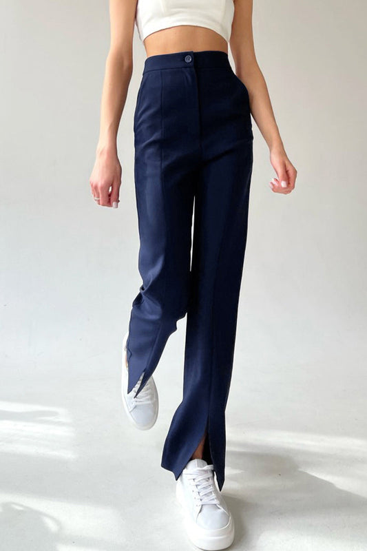 Casual Simplicity Solid Slit Solid Color Regular Straight Solid Color Bottoms