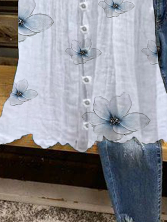 Women's Loose Long-Sleeved Solid Button Linen Top