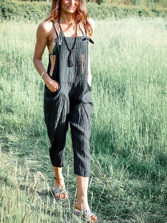 Women's V-neck Sleeveless Layered Linen A-line Dress
