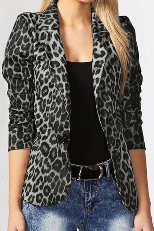 Casual Leopard Split Joint Turndown Collar Outerwear