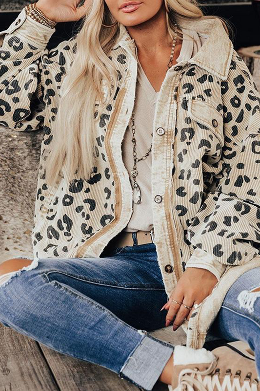 Casual Leopard Split Joint Turndown Collar Outerwear(3 colors)