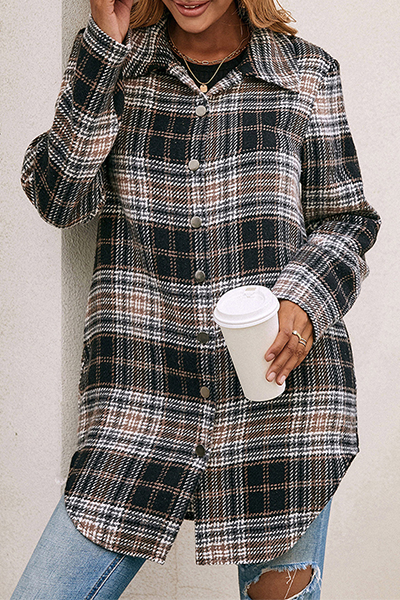 Casual Plaid Patchwork Buckle Turndown Collar Outerwear