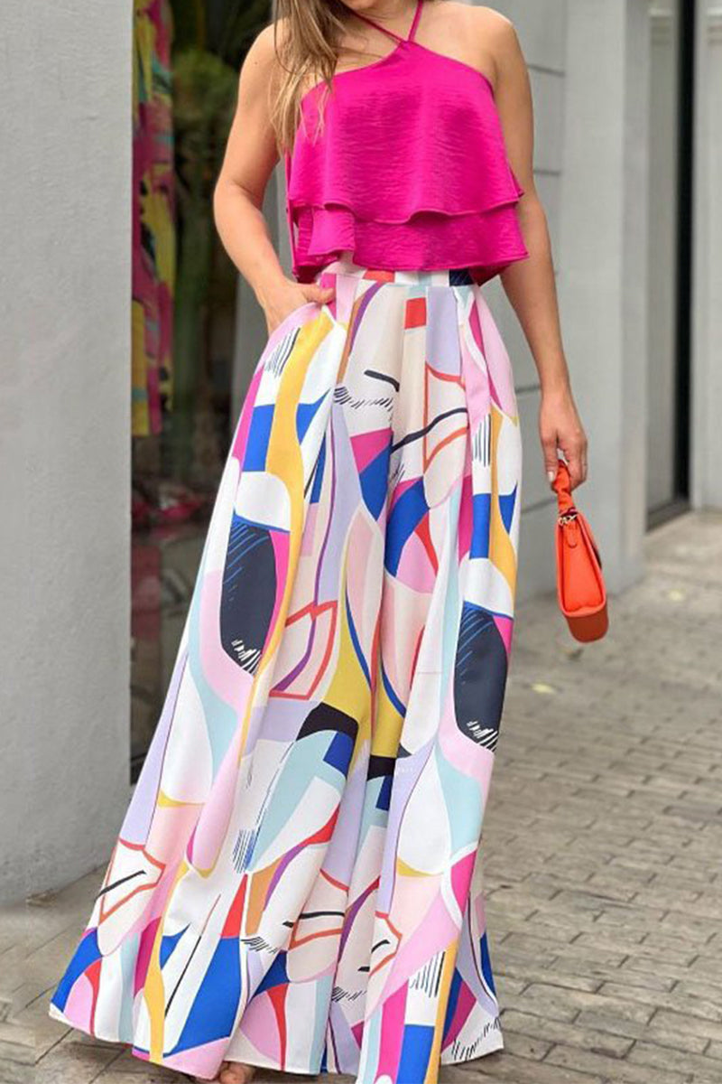 Casual Street Print Patchwork Halter Sleeveless Two Pieces