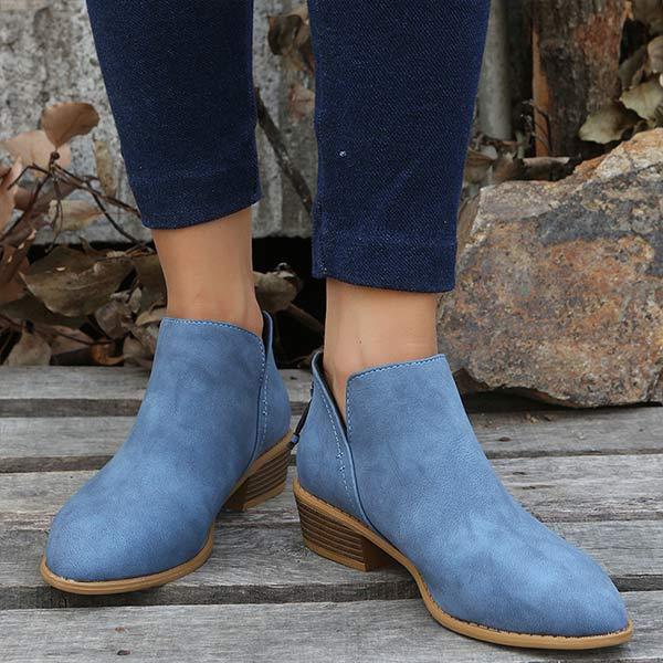 Women'S Chunky Heel Back Zip Ankle Boots 27545675C