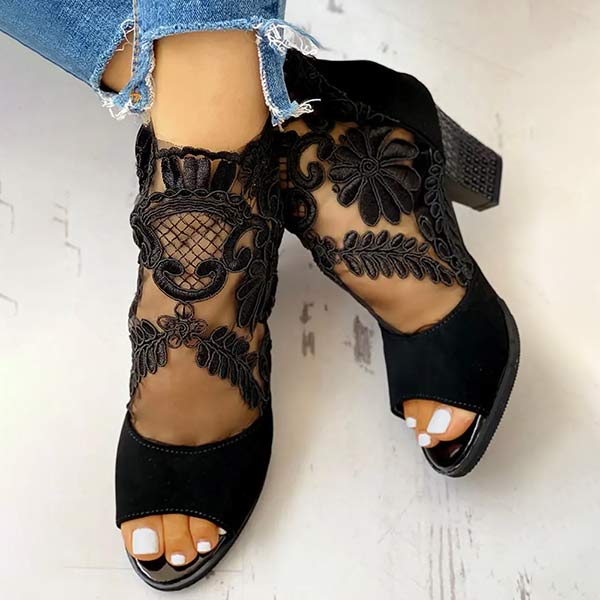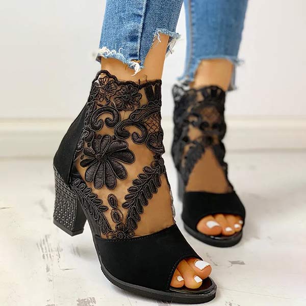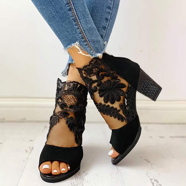 Women'S Chunky Heel Open Toe Lace Sandals 29617810