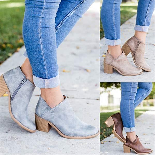 Women'S Chunky Heel Side Zip Ankle Boots 87990684C