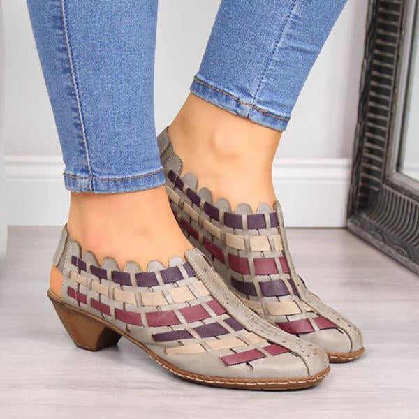 Women's Colorblock Cross-woven Casual Pointed Toe Booties 38467893C