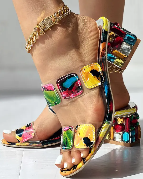 Women'S Colorful Mid-Heel Sandals 94913319C