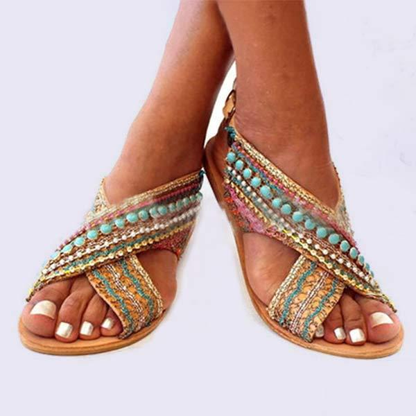 Women'S Ethnic Style Boho Open Toe Flat Sandals 22944322C