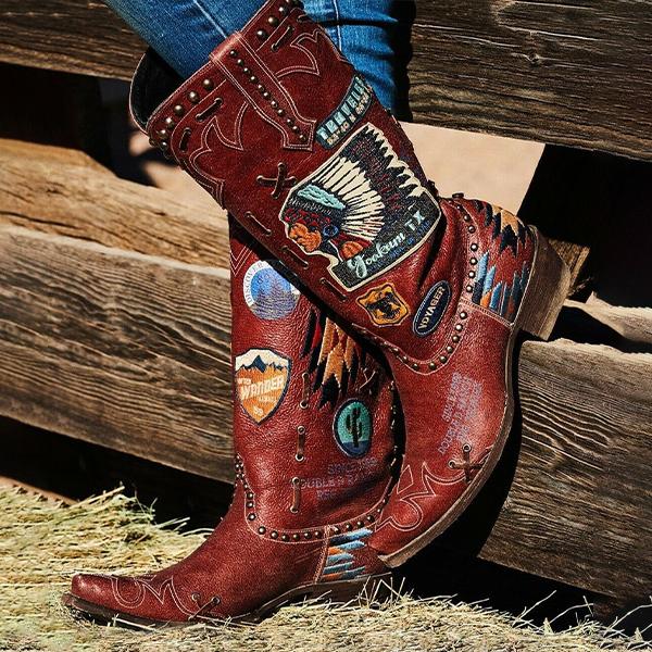 Women's Fashion Retro Illustration Mid Boots 08444275S