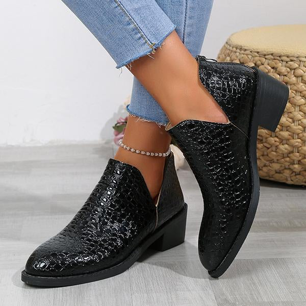 These ankle boots feature a stone pattern design that adds a touch of sophistication and elegance to your overall look. The unique pattern creates visual interest and makes these boots stand out from traditional plain designs. The chunky heel provides stability and height while the ankle height adds a modern twist. With their fashionable design these boots can elevate your workwear ensemble and make a fashion statement in a professional setting.Product Details