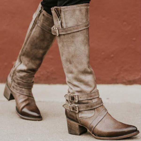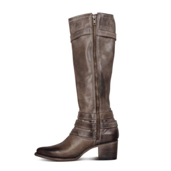 Women's High Shaft Belt Buckle Knight Boots with Chunky High Heels 26875201C