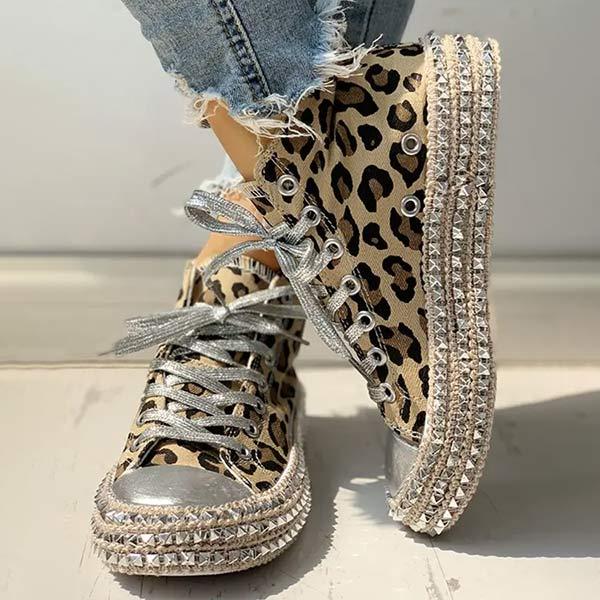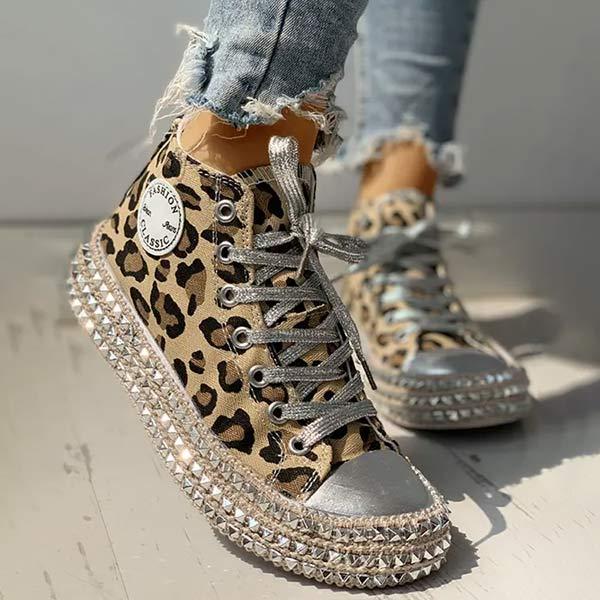 Women'S High Top Fashion Stud Leopard Print Espadrilles 36901966C