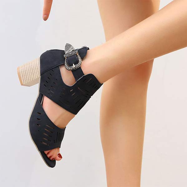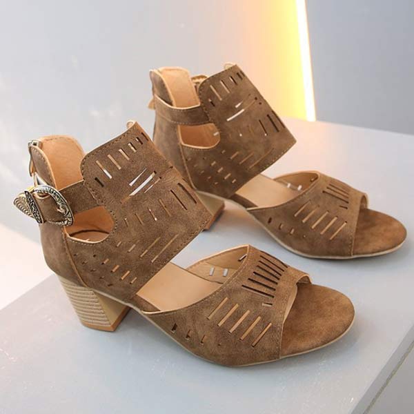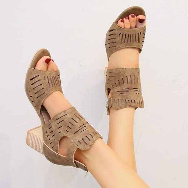 Women'S Hollow Chunky Heel High Heel Sandals 10470422C
