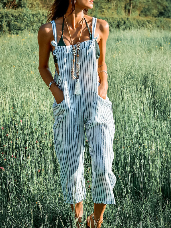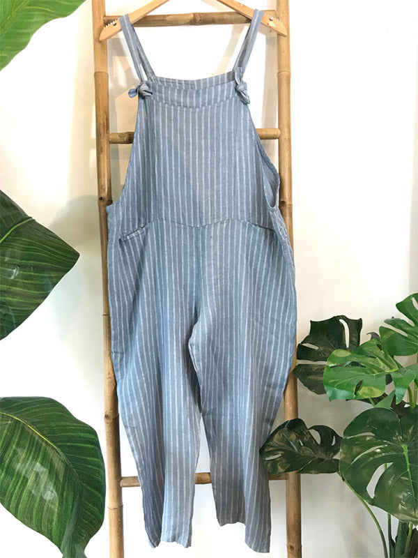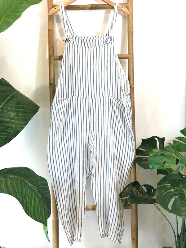 Our Soft and Slouchy Striped Suspenders Overalls are featured in a relaxed laid back style with a straight slightly tapered leg. Featured with two side pockets for extra detailing and with a slightly cropped length for super effortless summer styling.