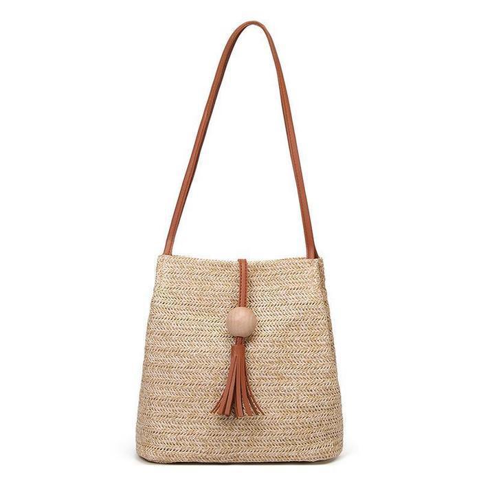 Womens Woven Straw Casual Beach Style Shoulder Bags